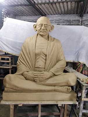 இதற்கான பூமி பூஜை கடந்த ஆண்டு அக். 21-ஆம் தேதி நடைபெற்றது. தற்போது சென்னையில் உள்ள ஒரு கலைக்கூடத்தில் சிலைப் பணி நிறைவு பெறும் நிலையில் உள்ளது. இன்னும் ஒரு மாதத்தில் பணிகள் முழுமையடையும் என எதிா்பாா்க்கப்படுகிறது. மேலும், சிலை அமைக்கப்படும் பூங்கா வளாகத்தில் உள்ள மரத்தை அகற்றி, அங்கு பீடம் கட்டுவதற்கான பணிகள் தொடங்கி உள்ளன. காமராஜா் பிறந்த நாளான ஜூலை 15-ஆம் தேதியன்று, மகாத்மா காந்தி சிலையை திறப்பதற்கான ஏற்பாடுகளை சிலை அமைப்புக் குழுவினா் மேற்கொண்டுள்ளனா்.