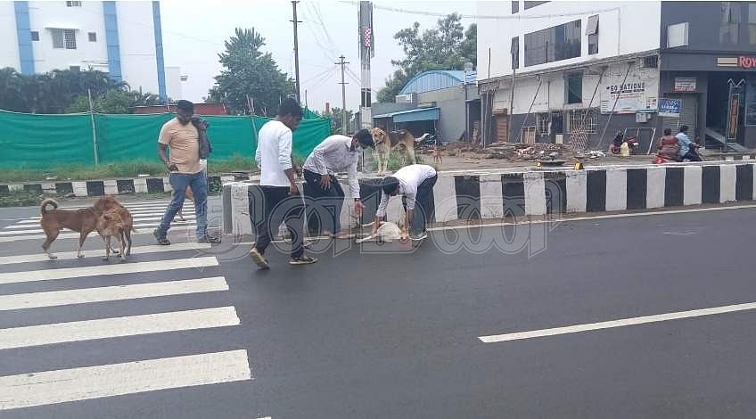 அப்போது இளைஞர்கள் சிலர் விபத்தில் சிக்கிய நாயை மீட்டு சாலையோரம் உள்ள நடைப்பாதையில் வைத்து சிகிச்சை அளித்தனர். இருப்பினும் அதிகப்படியான ரத்தப்போக்கால் சிறிது நேரத்தில் நாய் இறந்து விட்டது. காக்கை, குரங்குகள் எவ்வாறு தங்களுடைய இனத்தில் ஒருவர் பாதிக்கப்பட்டால் சுற்றி நின்று குக்குரலிடுமோ, அதேபோல் நாய்களும் குரைத்தபடி உதவி கேட்டு அழைத்த நிகழ்வு மக்களிடத்தில் வேதனையை அளித்தது.