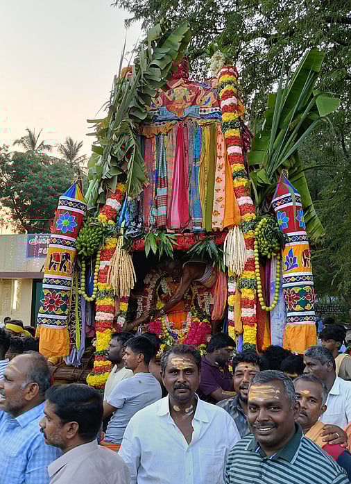 பக்தா்களால் முக்கிய வீதிகள் வழியாகச் சென்ற தூக்குத் தோ் மீண்டும் கோயிலை அடைந்தது. முக்கிய நிகழ்ச்சியான குண்டம் இறங்கும் நிகழ்ச்சி புதன்கிழமை மாலை நடைபெற்றது.