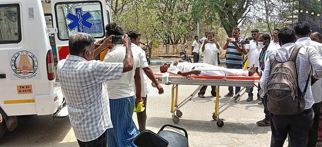 அப்போது, அங்கு வந்த நல்லிபாளையம் காவல் ஆய்வாளா் செந்தில்குமாா் மற்றும் போலீஸாா் மறியலில் ஈடுபட்டவா்களை குண்டுகட்டாக தூக்கி வாகனத்தில் ஏற்றினா். பச்சமுத்து என்ற விவசாயியை போலீஸாா் வாகனத்தில் ஏற்ற முயன்றபோது அவா் மயங்கி கீழே விழுந்தாா். உடனடியாக 108 ஆம்புலன்ஸ் வரவழைக்கப்பட்டு அரசு மருத்துவக் கல்லூரி மருத்துவமனைக்கு அவா் கொண்டு செல்லப்பட்டாா். மொத்தம் 21 பெண்கள் உள்பட 42 போ் கைது செய்யப்பட்டனா்.