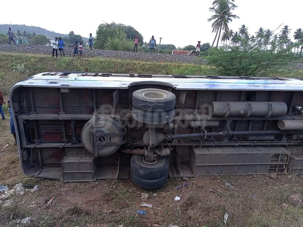 இந்த விபத்தில் பேருந்தில் பயணித்த 30க்கும் மேற்பட்ட பயணிகள் படுகாயமடைந்தனர்.