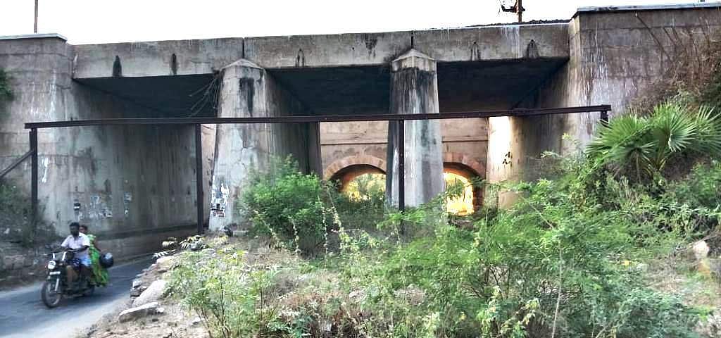 சங்ககிரி: மாவெளிபாளையம் தரைவழி பாலத்தில் முள் செடிகள் அகற்றம்