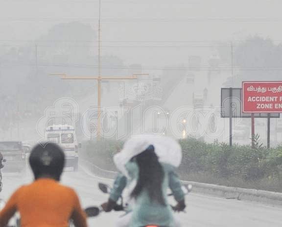 சேலத்தில் ஞாயிற்றுக்கிழமை பனிப்பொழிவுடன் பெய்த சாரல் மழை. இடம் கருப்பூர் பகுதி பெங்களூர் தேசிய நெடுஞ்சாலை.