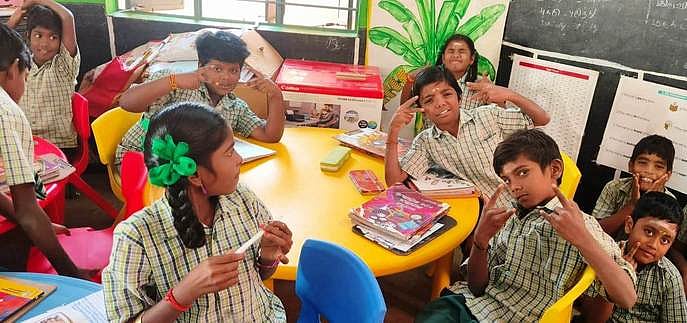தொடக்கப் பள்ளிகளில் படித்துவரும் குழந்தைகளின் மனநிலையை அறிந்து அவா்களை உற்சாகப்படுத்தும் வகையில் ஸ்மாா்ட் டி.வி பொருத்தப்பட்டுள்ள திறன்மிகு வகுப்பறைகளில் அமா்ந்து கற்பதற்கு ஏற்ப தற்போது பல வண்ணங்களில் மேஜை, நாற்காலிகள் வழங்கப்பட்டுள்ளன.