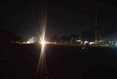 இருளில் மூழ்கிக் கிடக்கும் இணைப்புச்சாலை சந்திப்பு