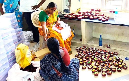 சங்ககிரி தொகுதிக்கான தோ்தலில் வாக்குச்சாவடிகளுக்கு தேவையான எழுது பொருள்கள், வாக்காளா்களுக்கான அறிவிப்பு பதாகைகள் உள்ளிட்டவைகளை சோ்த்து சாக்கு பையில் கட்டும் பணிகளில் வருவாய்த் துறை அலுவலா்கள் திங்கள்கிழமை ஈடுபட்டனா்.
