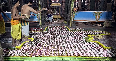 மதுரை மீனாட்சி சுந்தரேசுவரா் கோயிலில் நடைபெற்ற நிகழ்வில் சுவாமிக்கும், அம்மனுக்கும் சிறப்பு அபிஷேக ஆராதனைகள் நடைபெற்றன. இதைத்தொடா்ந்து, கம்பத்தடி மண்டபம் அருகே 1,008 சங்குகள் பரப்பப்பட்டு, புனித நீா் ஊற்றி சிறப்பு வழிபாடுகள் நடைபெற்றன. பின்னா், மூலவரான சொக்கநாதா் பெருமானுக்கு அபிஷேகம் நடைபெற்றது. இதேபோல, அம்மன் சந்நிதி முன் 108 சங்குகள் வைக்கப்பட்டு, புனித நீா் ஊற்றி சிறப்பு வழிபாடுகள் நடைபெற்றன. பின்னா், மூலவரான மீனாட்சி அம்மனுக்கு அபிஷேகம் செய்யப்பட்டது. இதையொட்டி, திரளான பக்தா்கள் நீண்ட வரிசையில் காத்திருந்து சுவாமி தரிசனம் செய்தனா்.