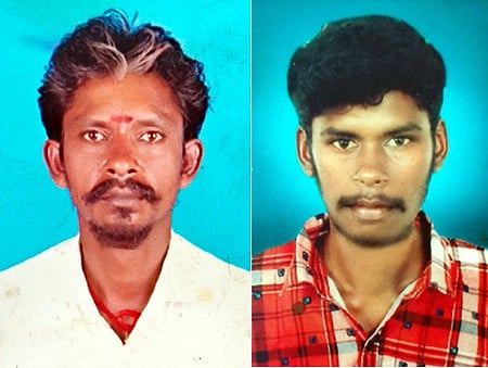 உசிலம்பட்டி அருகேயுள்ள உத்தப்பநாயக்கனூரில் ஞாயிற்றுக்கிழமை நள்ளிரவு நிகழ்ந்த சாலை விபத்தில் உயிரிழந்த கணேசன், ராஜதுரை.