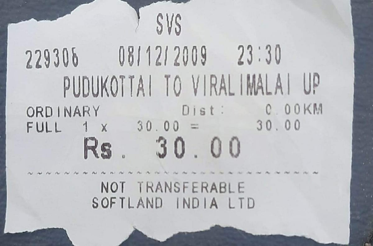 இது மற்ற பேருந்துகளை விட ரூபாய் 4 அதிகமாம். மேலும் இந்த பேருந்தில் கடந்த 2009ஆம் ஆண்டு அச்சடிக்கப்பட்ட பயணச்சீட்டை பயணிகளுக்கு வழங்கி வந்துள்ளனர். இதனைத் தொடர்ந்து இன்று இந்த பேருந்தில் புதுக்கோட்டையிலிருந்து விராலிமலை பயணித்த பயணிகள் இது குறித்து நடத்துனரிடம் கேட்டுள்ளனர்.