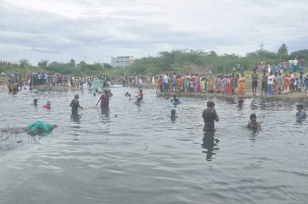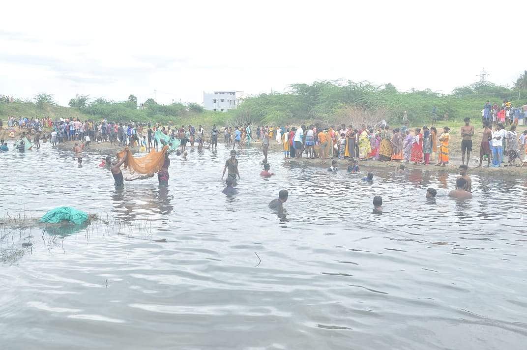 திண்டுக்கல்: நல்லாம்பட்டி ராசா குளத்தில் மீன்பிடித் திருவிழா