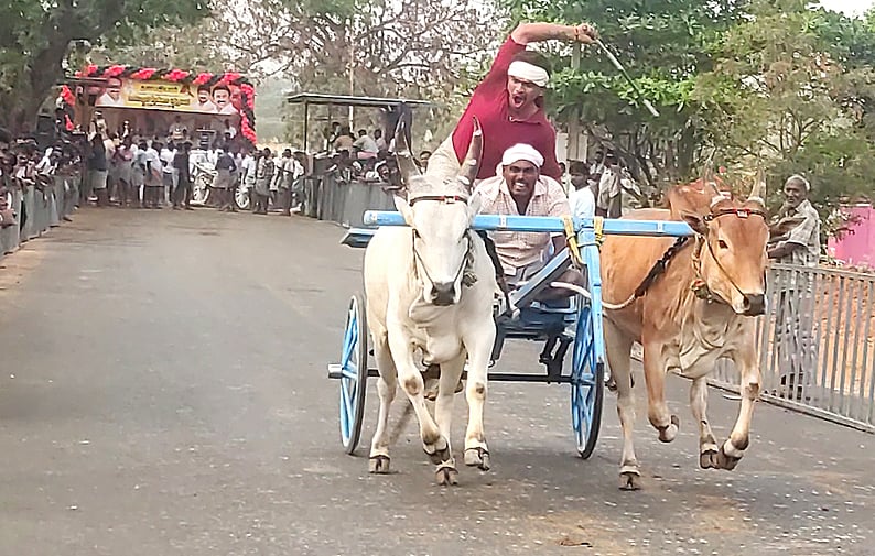 பழனியில் இரட்டை மாட்டுவண்டிப் பந்தயம்