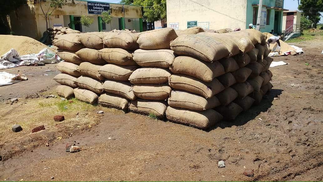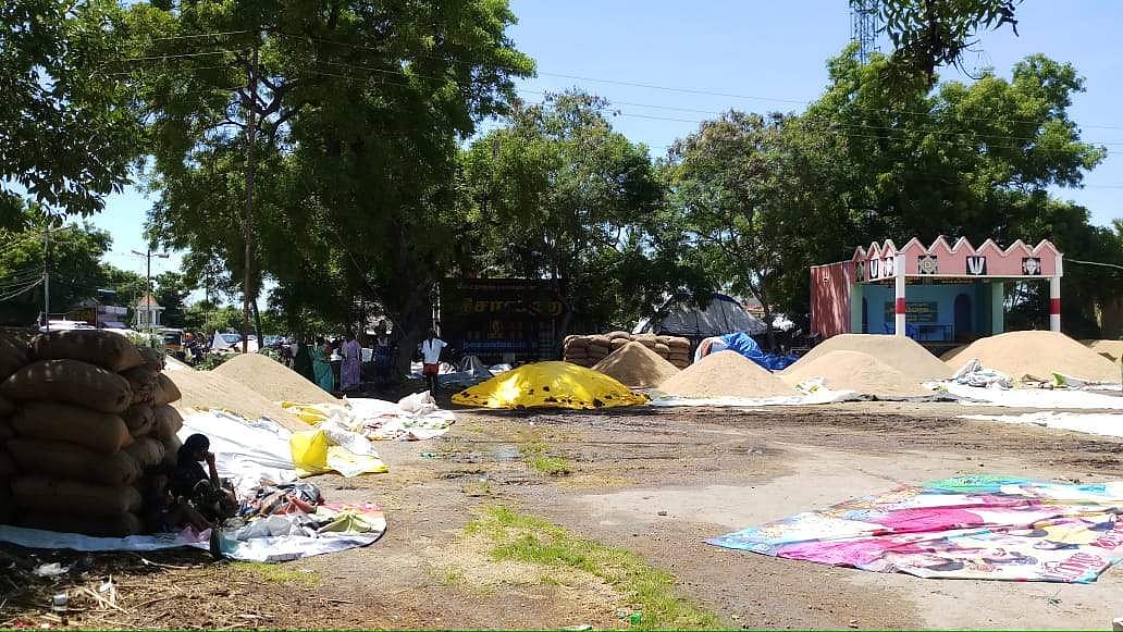 மதுரை மாவட்டம், செல்லம்பட்டி ஒன்றியத்துக்கு உள்பட்ட பல்வேறு கிராமங்களில் விவசாயிகள் தங்கள் நிலத்தில் நெல் அறுவடை செய்து செல்லம்பட்டி நெல் கொள்முதல் நிலையத்தில் வெளியில் குவிக்கப்பட்டுள்ளது.