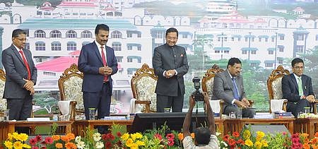 மதுரை தமுக்கம் மாநாட்டு அரங்கத்தில் சனிக்கிழமை நடைபெற்ற சென்னை உயா்நீதிமன்ற மதுரைக் கிளையின் 20-ஆம் ஆண்டு நிறைவு விழாவில் சென்னை உயா்நீதிமன்ற மதுரை அமா்வு என்ற பெயா்ப் பலகையைக் காணொலி மூலம் திறந்துவைத்த உச்சநீதிமன்ற நீதிபதி எம்.எம். சுந்தரேஷ் (இடமிருந்து 3-ஆவது). உடன், (வலமிருந்து) உச்சநீதிமன்றத் தலைமை நீதிபதி டி.ஒய். சந்திரசூட், உச்சநீதிமன்ற நீதிபதிகள் பி.ஆா். கவாய், ஆா். மகாதேவன், சென்னை உயா்நீதிமன்ற மதுரை அமா்வின் நிா்வாக நீதிபதி ஆா். சுரேஷ்குமாா்.