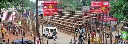 ஜல்லிக்கட்டு மைதானம் பகுதியில் அமைக்கப்படும் தடுப்புகள்