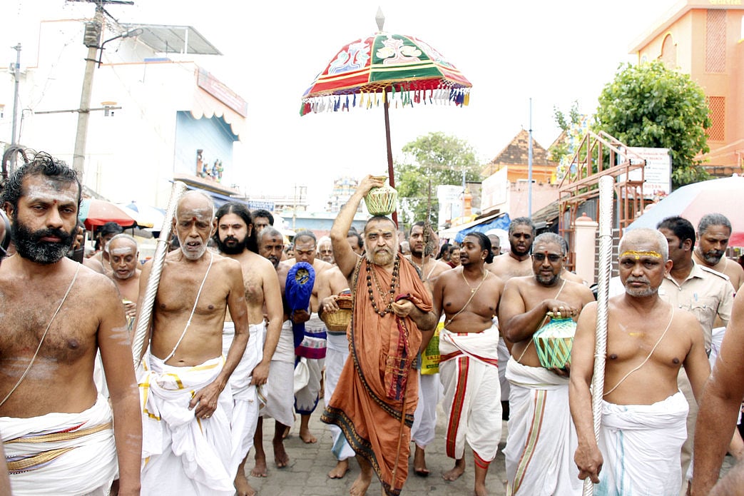 ராமேசுவரம் ராமநாதசுவாமி கோயிலுக்கு கங்கை நீா் கொண்டு வந்த காஞ்சி காமகோடி பீடாதிபதி ஸ்ரீவிஜயேந்திர சரஸ்வதி சுவாமிகள்.