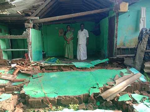 திருவாடானை மகாலிங்கம் கோயில் அருகே வசித்து வந்த துரைப்பாண்டி என்பவரது வீடு இடிந்து சேதம் அடைந்தது.