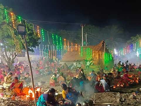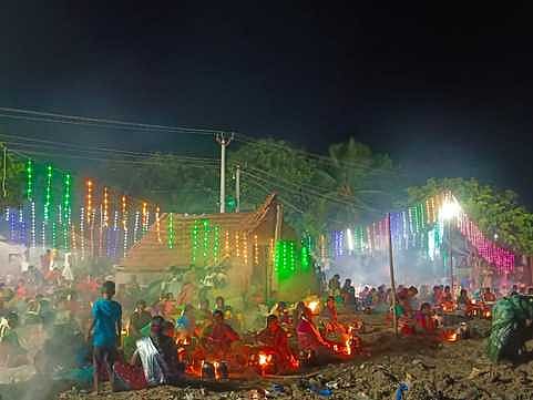 நம்புதாளையில் கடல் அன்னையான கங்காதேவிக்கு நன்றி செலுத்தும் விதமாக கடற்கரையில் செவ்வாய்க்கிழமை இரவு பொங்கல் வைத்து வழிபட்ட பெண்கள்.