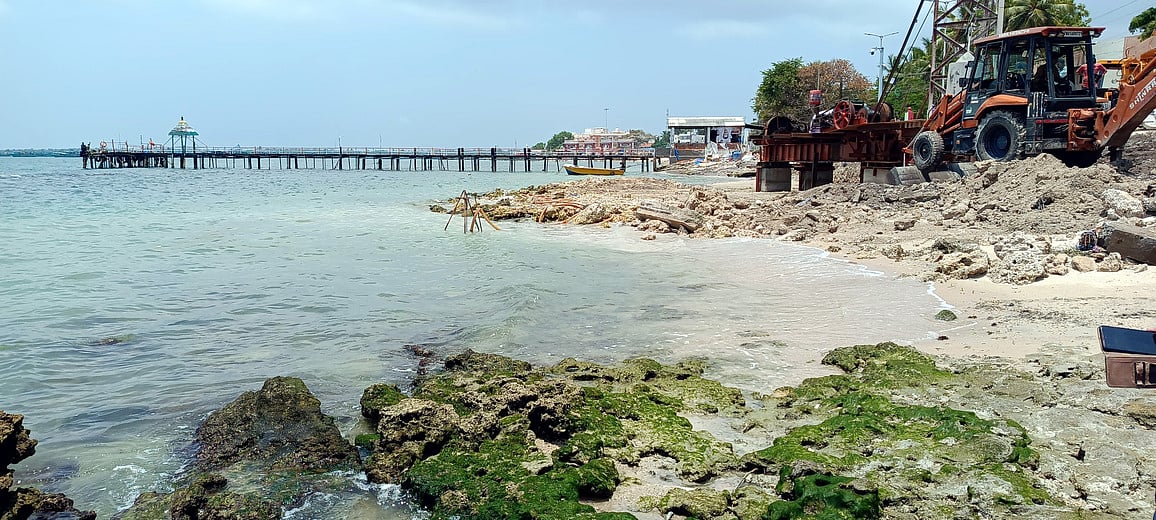 ராமேசுவரத்தில் சுற்றுலாப் படகு தளம் அமைக்க பவளப் பாறைகள் உடைப்பு