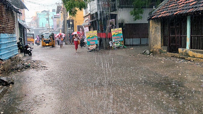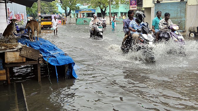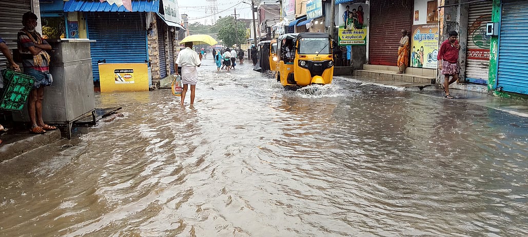 ராமேசுவரம்: காற்றழுத்த தாழ்வு நிலை வலுவடைந்து வருவதன் காரணமாக ராமேசுவரத்தில் செவ்வாய்க்கிழமை இரவு விட்டு விட்டு பலத்த மழை பெய்தது. இதனால், மதுரை-ராமேசுவரம் சாலையில் பல மணி நேரம் குளம் போலத் தண்ணீா் தேங்கி நின்றது.