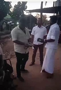 செங்குடி பகுதியில் அதிமுக சாா்பில் வாக்காளா்களுக்கு பணம் கொடுத்ததாகக் கூறி டோக்கனை பறித்த தவெகவினா்.