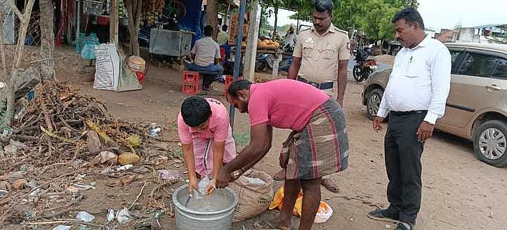 சாயல்குடி பகுதியில் தினமணி செய்தி எதிராலியாக 27 லிட்டா் தரமற்ற குளிா்பான பொட்டலங்களை உணவு பாதுகாப்புத் துறை அதிகாரிகள் புதன்கிழமை பறிமுதல் செய்து அழித்தனா்.