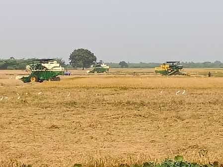 சாகுபடி செய்து வருகின்றனா். இந்த நிலையில், வண்டல், வரவணி, செங்குடி, மஞ்சள்பட்டினம் உள்ளிட்ட பல்வேறு பகுதிகளில் கதிா்கள் விளைந்து அறுவடைக்கு தயாரான நிலையில், ஆரணி, சேலம், நாமக்கல், விழுப்புரம் உள்ளிட்ட பல்வேறு வெளி மாவட்டங்களிலிருந்து அறுவடை இயந்திரங்கள் வரவழைக்கப்பட்டு, தற்போது அறுவடைப் பணியில் விவசாயிகள் மும்மரமாக ஈடுபட்டு வருகின்றனா். இதனால், நெல் கொள்முதல் வியாபாரிகள் நெல் வாங்குவதற்கு இந்தப் பகுதியில் முகாமிட்டுள்ளனா்.