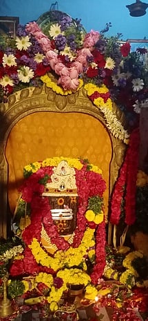 ஆடி அமாவாசையையொட்டி, மானாமதுரை அருகேயுள்ள அன்னவாசலில் ஞாயிற்றுக்கிழமை மலா் அலங்காரத்தில் அருள்பாலித்த ராமநாதசுவாமி.