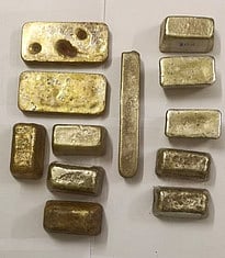 பறிமுதல் செய்யப்பட்ட நகைகள், வெள்ளிக்கட்டிகள்.