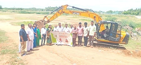 திருப்புவனம் அருகேயுள்ள கீழடியில் அட்டையடி கண்மாய் தூா்வாரும் பணி தொடக்க விழாவில் பங்கேற்ற ஊராட்சி மன்றத் தலைவா் வெங்கடசுப்ரமணியன், மதுரை மேற்கு சுழற் சங்க நிா்வாகிகள்.