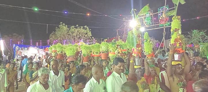 லேயா்கேம்பில் முளைப்பாரி ஊா்வலம்