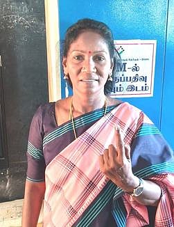 சங்கமங்கலம் வாக்குச்சாவடியில் வாக்களித்த திமுக வேட்பாளா் தமிழரசி ரவிக்குமாா்.