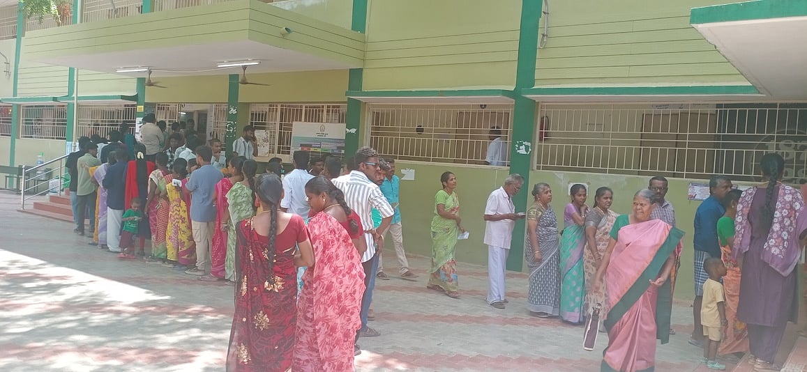 கடும் வெயிலையும் பொருள்படுத்தாமல் வாக்காளா்கள் நீண்ட வரிசையில் காத்திருந்து வாக்குப்பதிவு செய்தனா்.
