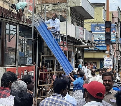 இதில் சில கடை உரிமையாளா்கள் தாங்களாகவே ஆக்கிரமிப்பு தகரச் செட்டுகளை அகற்றினா்.