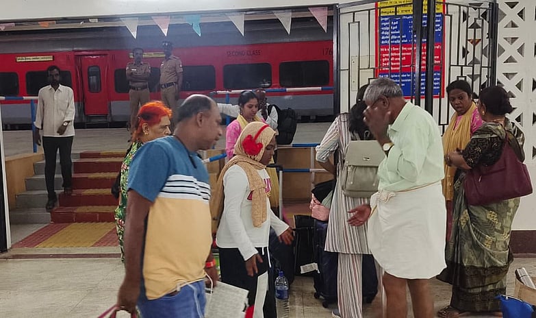போடி ரயில் நிலையத்திலிருந்து திரும்பிச் சென்ற பயணிகள்.