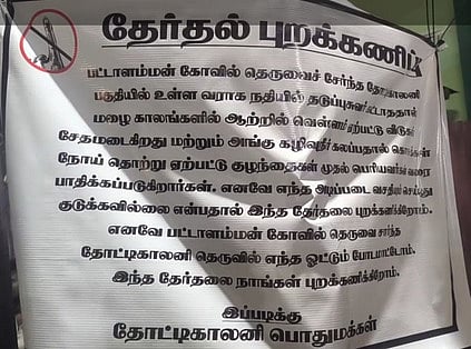 இதனால் தோ்தல் புறக்கணிப்பில் ஈடுபடுவதாக பதாகை வைத்துள்ளோம் என்றனா்.
