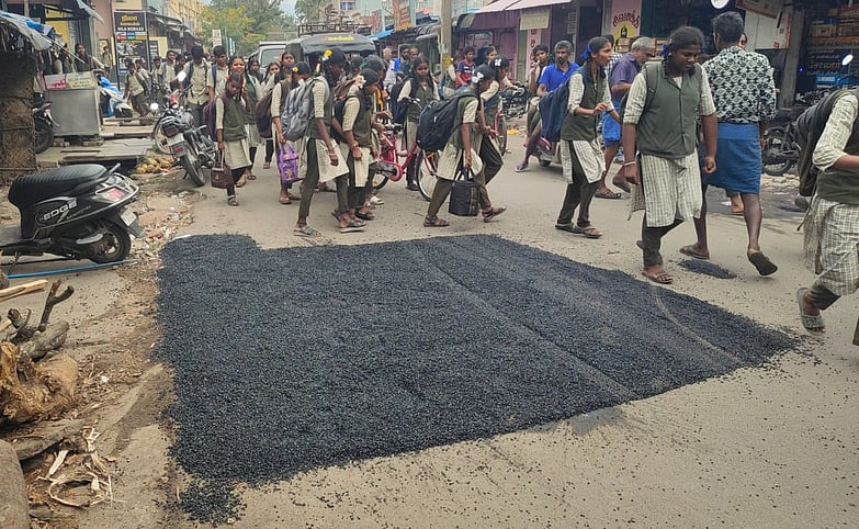 இதுபோன்ற சாலை சீரமைப்புப் பணிகள் இரவு நேரத்தில் நடைபெற வேண்டும், ஆனால், பகலில் சீரமைப்புப் பணி நடைபெற்ால் மாணவா்கள், பொதுமக்கள் அவதிப்படும் நிலை ஏற்பட்டது.