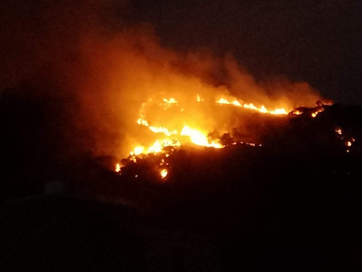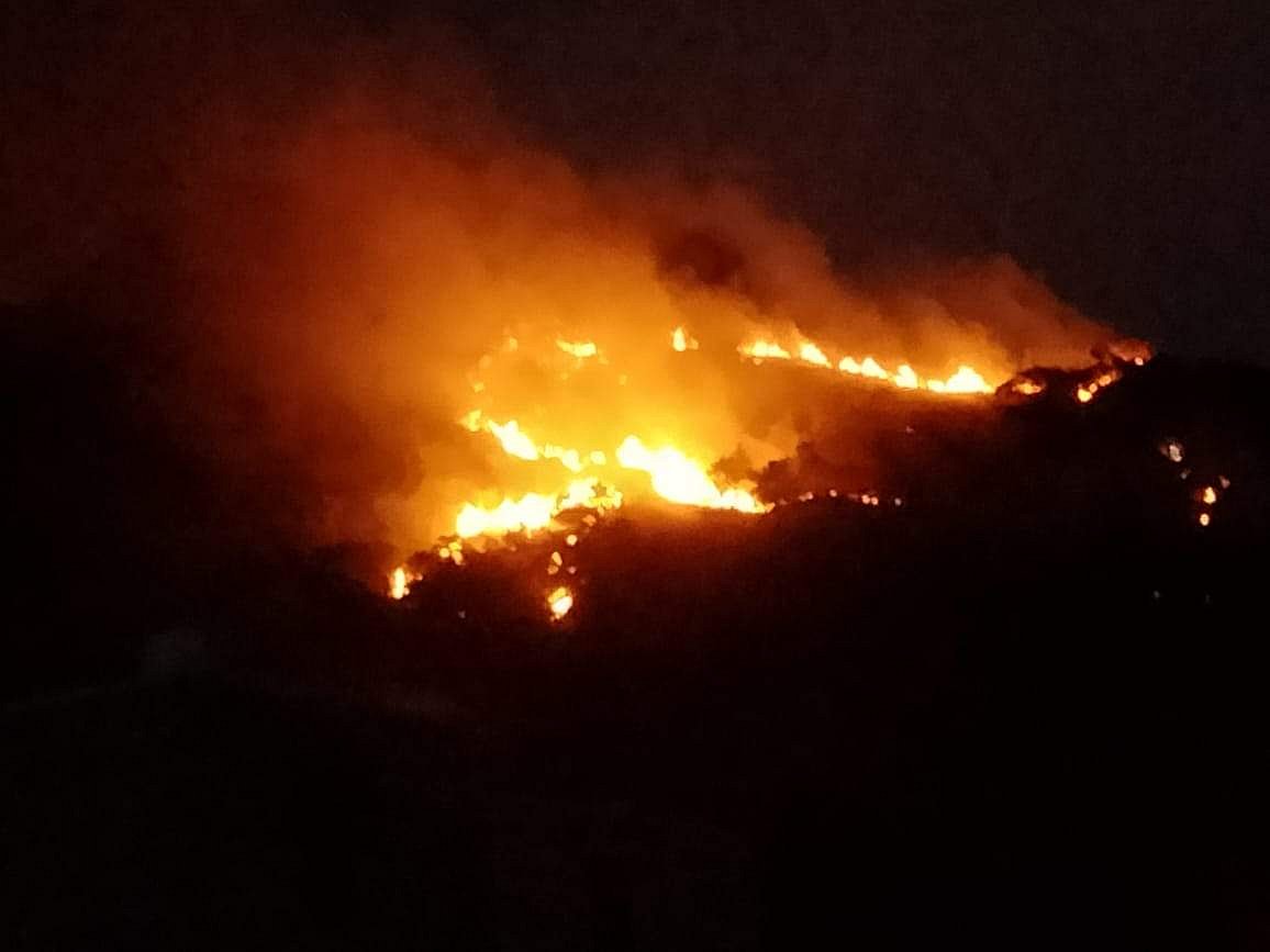 விருதுநகர் மாவட்டம், ராஜபாளையம் கிழக்குப் பகுதியில் அமைந்துள்ள சஞ்சீவி மலைப்பகுதியில் மாலையில் திடீரென தீப்பிடித்து எரிந்தது. இந்த காட்டுத்தீ சுமார் 3 கிலோமீட்டர் சுற்றளவுக்கு பரவி மலையில் தீபம் ஏற்றியது போல் எரிந்து கொண்டிருந்தது.