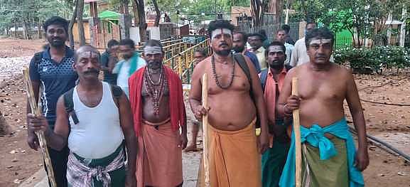 சதுரகிரி சுந்தர மகாலிங்கம் கோயிலில் புதன்கிழமை சுவாமி தரிசனத்துக்குச் சென்ற பக்தா்கள்.