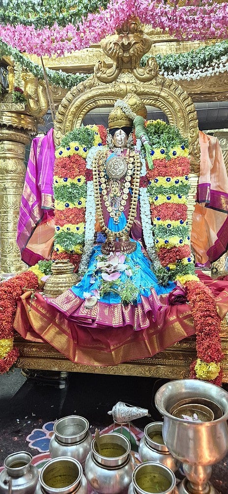 ஸ்ரீவில்லிபுத்தூா் ஆண்டாள் கோயிலில் மூலவா் வடபத்ரசயனா் (பெரிய பெருமாள்) தினசரி பூஜையின் போது, ஆண்டாள் சூடிய மாலை அணிந்து பக்தா்களுக்கு அருள்பாலிக்கிறாா். ஆண்டாள் சூடும் மாலையில் 108 திவ்ய தேசப் பெருமாளும் இருப்பதாக ஐதீகம்.