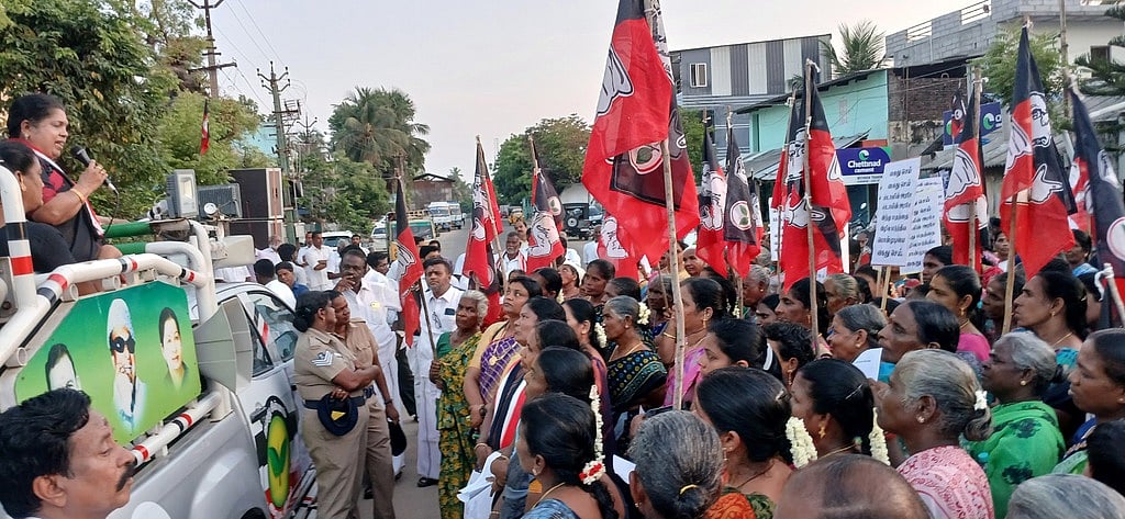 ஆா்ப்பாட்டத்துக்கு அதிமுக மகளிா் அணி மாவட்டச் செயலாளா் இளவரசி தங்கராசு தலைமை வகித்தாா். மாவட்ட துணைச் செயலாளா் வசந்தி செல்வகுமாா், இலக்கிய அணி செயலாளா் காளிமுத்து ஆகியோா் பேசினா். முன்னாள் அமைச்சா் இரா. ஜீவானந்தம், அதிமுக நிா்வாகிகள் இரா. சண்முகராசு, இரா. கிரிதரன், டி.வி.சுப்பையன், வழக்குரைஞா் தங்க. கதிரவன், நகரச் செயலாளா் நமச்சிவாயம் பங்கேற்றனா்.மகளிா் அணி நகரச் செயலாளா் ஜெயா.முருகேசன் வரவேற்றாா். மாவட்ட இணைச் செயலாளா் வெற்றிச்செல்வி நன்றி கூறினாா்.