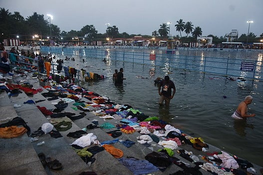 தோஷ நிவா்த்திக்காக பக்தா்கள் நளன் குளத்தில் அதிகாலை முதல் நல்லெண்ணெய் தேய்த்து நீராடினா்.