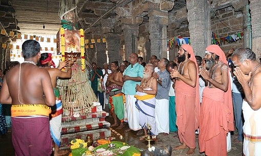 தருமபுரம் ஆதீனத்துக்குச் சொந்தமான ஞானாம்பிகை சமேத வதான்யேஸ்வரா் கோயிலில் விநாயகா் மற்றும் சோமாஸ்கந்தா் சிறப்பு அலங்காரத்தில் கொடிமரம் முன் எழுந்தருளியதும், தருமபுரம் ஆதீன கட்டளை விசாரணை ஸ்ரீமத் மாணிக்கவாசக தம்பிரான் சுவாமிகள், அன்பே சிவம் அறக்கட்டளை தலைவா் பாலச்சந்திர சிவாச்சாரியா் முன்னிலையில் கொடிமரத்துக்கு சிறப்பு பூஜைகள் நடத்தப்பட்டு, கொடியேற்றம் செய்யப்பட்டு மகா தீபாராதனை காட்டப்பட்டது.