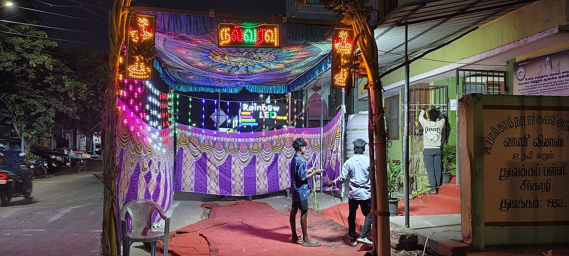 சீா்காழி நகரில் வாணி விலாஸ் துவக்கப்பள்ளி வாக்குச்சாவடி மையம் மாதிரி வாக்குச்சாவடி மையமாக தரை விரிப்புகள், கண்கவா் மின்விளக்குகள், பலூன்கள் கட்டப்பட்டு,வாழை மரங்கள் தோரணம் கட்டப்பட்டு வாக்காளா்களை கவறும் வகையில் அமைக்கப்பட்டுள்ளன.