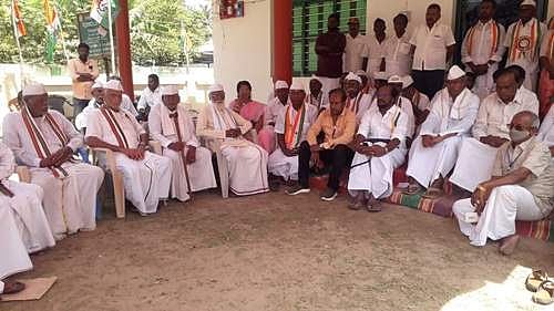 வேதாரண்யத்தில் அடையாள மெனனம் மேற்கொண்ட யாத்திரைக் குழுவினருடன், முன்னாள் அமைச்சர் கே.வி.தங்கபாலு, முன்னாள் எம்.பி.,பி.வி.ராசேந்திரன் உள்ளிட்ட காங்கிரஸார்.