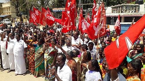கோட்டாட்சியர் அலுவலகம் எதிரே நடைபெற்ற ஆர்ப்பாட்டத்துக்கு இந்திய கம்யூனிஸ்ட் கட்சியின் ஒன்றியச் செயலாளர் சிவகுரு. பாண்டியன் தலைமை வகித்தார். ராஜாஜி பூங்காவில் இருந்து பேரணியாக சென்ற நூற்றுக்கணக்கான தொழிலாளர்கள் போராட்டத்தில் ஈடுபட்டனர்.