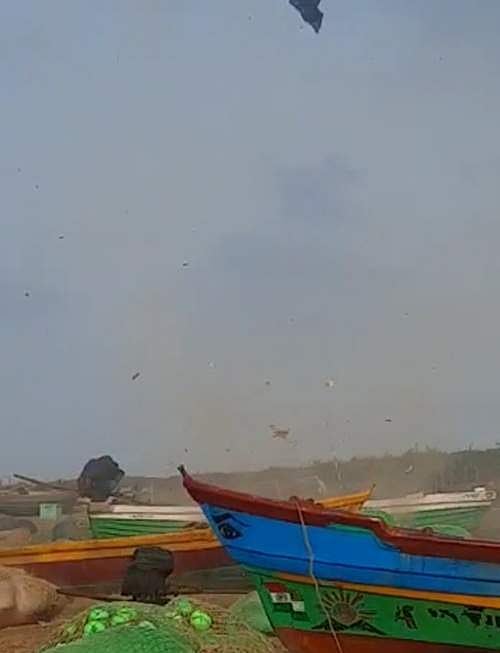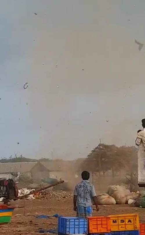 உயரத்தில் சுழன்று வந்த இந்த காற்றுச் சுழற்சியைக் கண்டு கடற்கரைக்கு வந்த மக்கள் அச்சமடைந்தனர். மீன்பிடி வலைகள் மேலே பறந்தன.