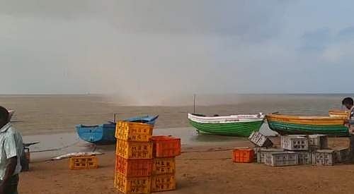 நாகை மாவட்டம் வேதாரண்யம் அடுத்த கோடியக்கரை மீன்பிடித்துறை பகுதிக்கு வந்த காற்றுச் சுழற்சி மக்களை அச்சமடைய செய்தது.