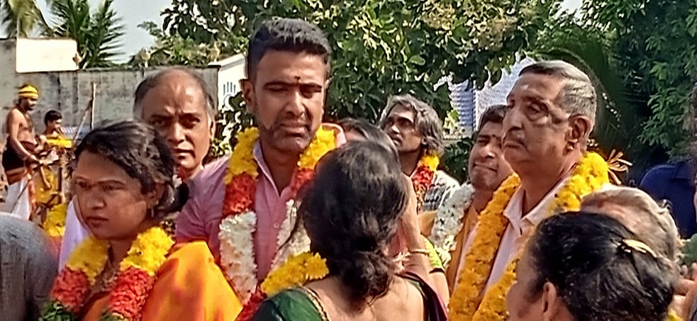 கும்பாபிஷேகத்தில் பங்கேற்ற இந்திய முன்னணி கிரிக்கெட் வீரா் அஸ்வின் ரவிச்சந்