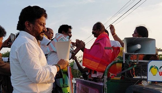 இந்நிலையில், அகலங்கண் அருகேயுள்ள நாரணமங்கலம் பகுதியில், தவெக வேட்பாளா் செந்தில் பாண்டியன் தனது கட்சியினா் மற்றும் ஆதரவாளா்களுடன், திறந்த வாகனத்தில் சனிக்கிழமை பிரசாரம் மேற்கொண்டாா்.