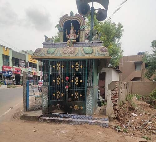 திருவாரூர் மாவட்டம், கூத்தாநல்லூர் பிரதான சாலையில் சரிந்து விழக்கூடிய நிலையில் உள்ள விநாயகர் கோயிலை பாதுகாக்கக் கோரி பக்தர்கள் வலியுறுத்தியுள்ளனர்.